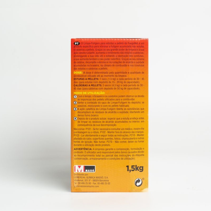 - El sistema de catálisis de este deshollinador actúa descomponiendo los depósitos de alquitrán y suciedad acumulados por el uso de pellets. Durante su aplicación, emite un humo blanco que facilita la liberación de residuos, dejando los conductos limpios y evitando obstrucciones. Esto no solo aumenta el poder calorífico, sino que también reduce el consumo de combustible.