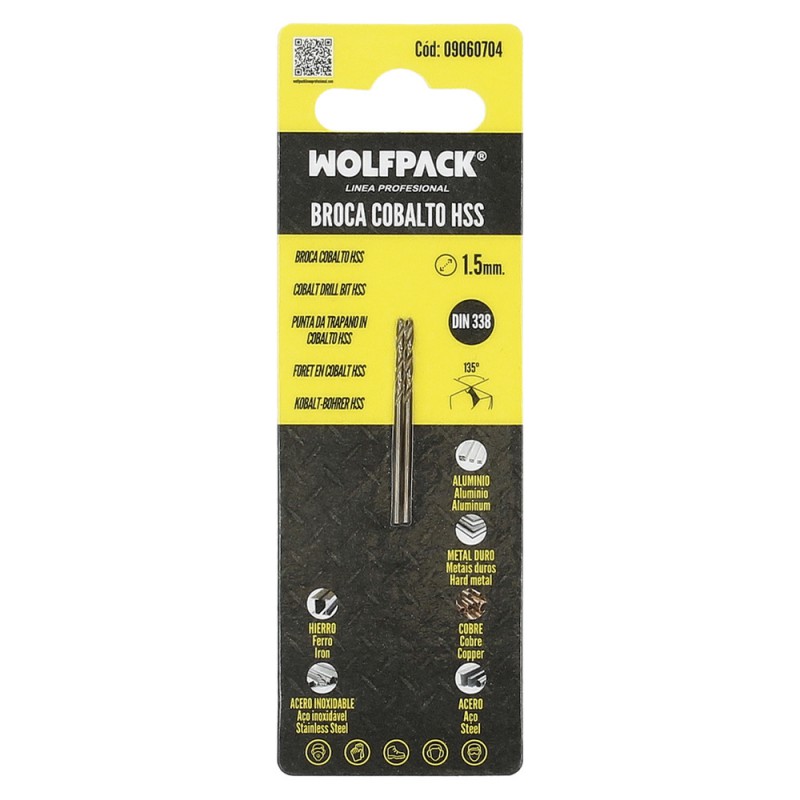 Broca Wolfpack Cobalto Hss Cilindrica 1,50 mm. Blister 2 Unidades.