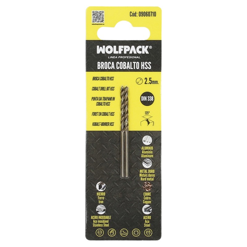 Broca Wolfpack Cobalto Hss Cilindrica 2,50 mm. Blister 2 Unidades.