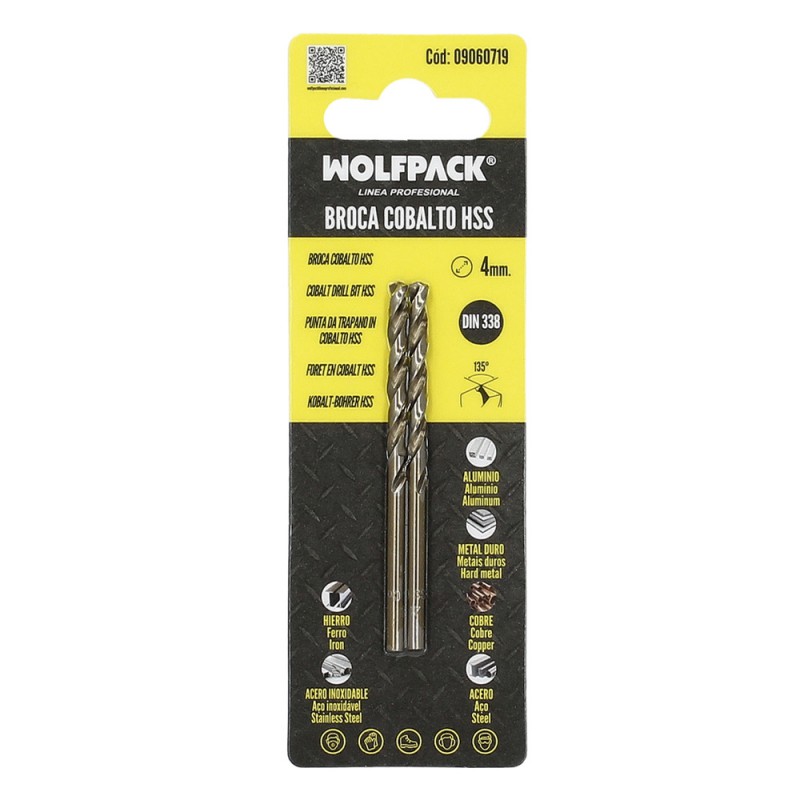 Broca Wolfpack Cobalto Hss Cilindrica 4,00 mm. Blister 2 Unidades.