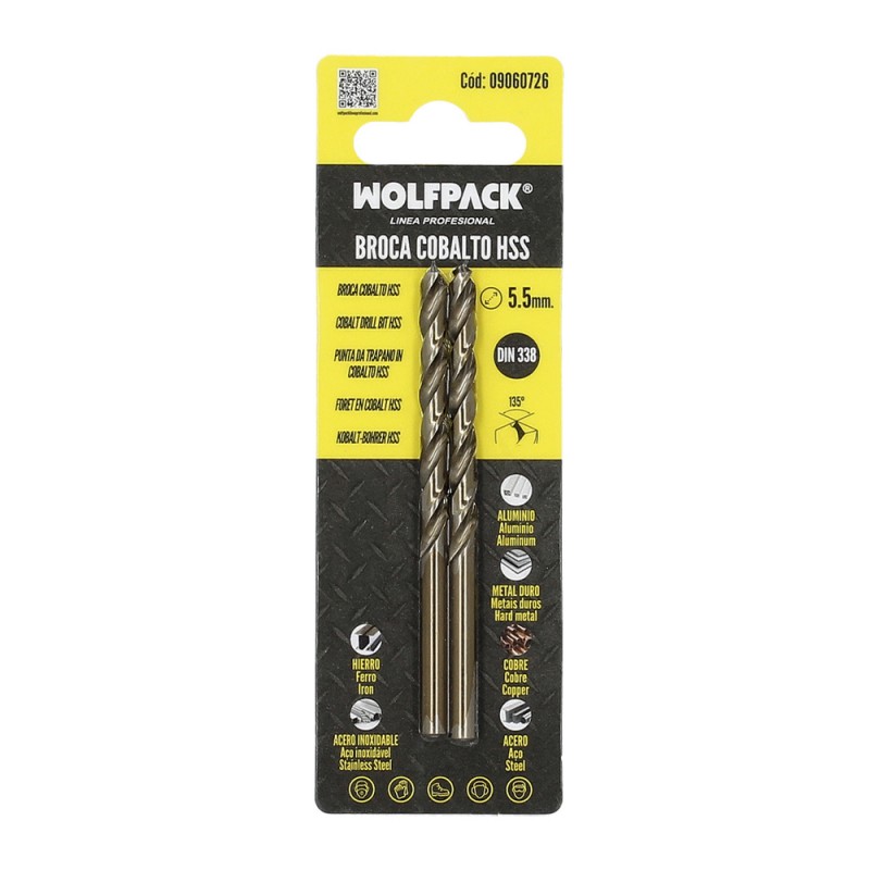 Broca Wolfpack Cobalto Hss Cilindrica 5,50 mm. Blister 2 Unidades.