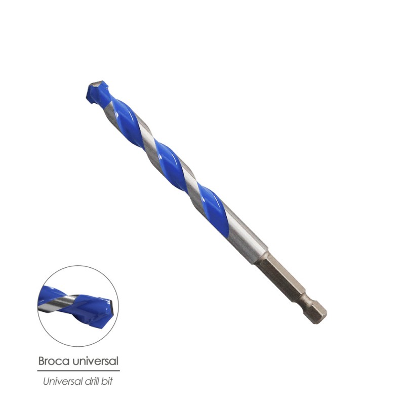 - Apta para la perforación de azulejos, cerámica, mármol, hormigón, metal, madera y plástico.