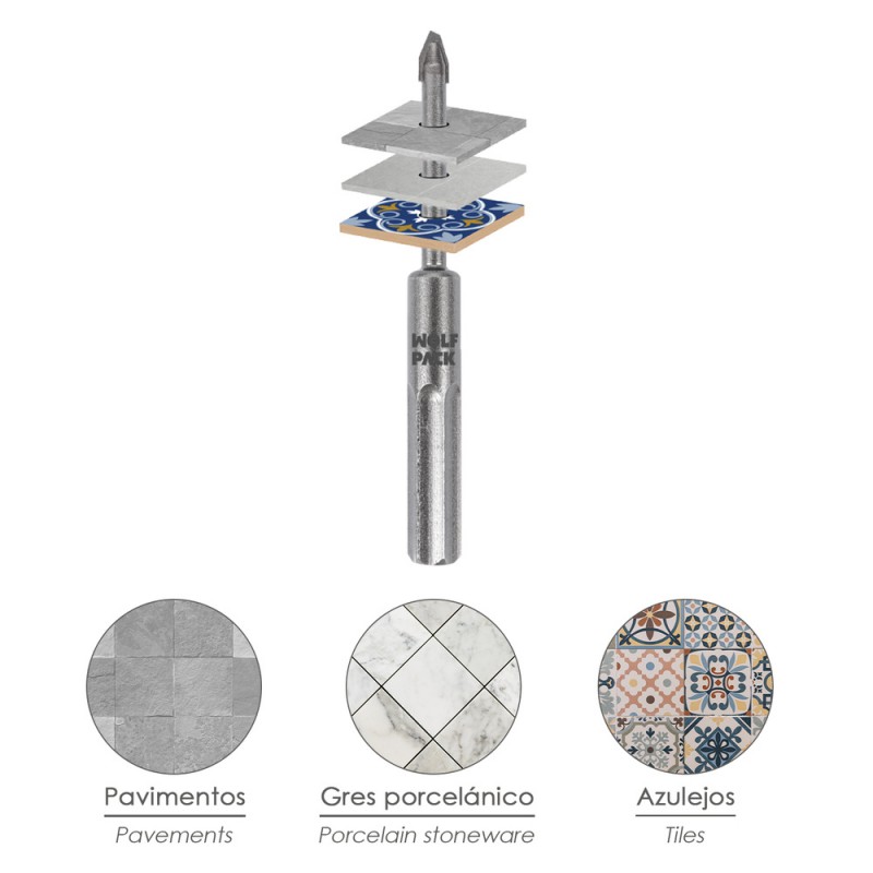 - Medida: Ø 6 mm. Broca diamantada para iniciar el taladrado de materiales duros.