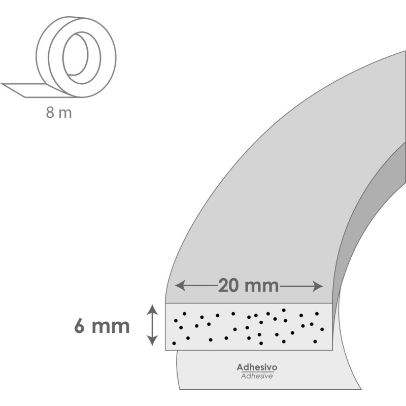 - De 8 metros de largo y 20 mm de ancho, ideal para garantizar un sellado perfecto en tus ventanas.