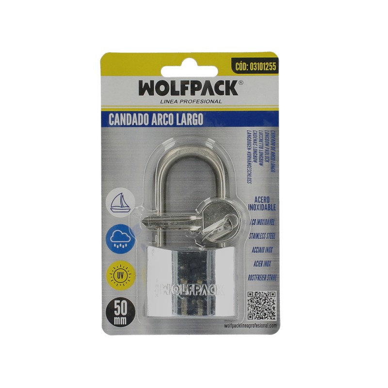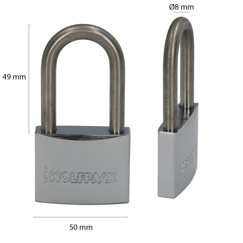 Candado Inoxidable Arco Largo 50mm.