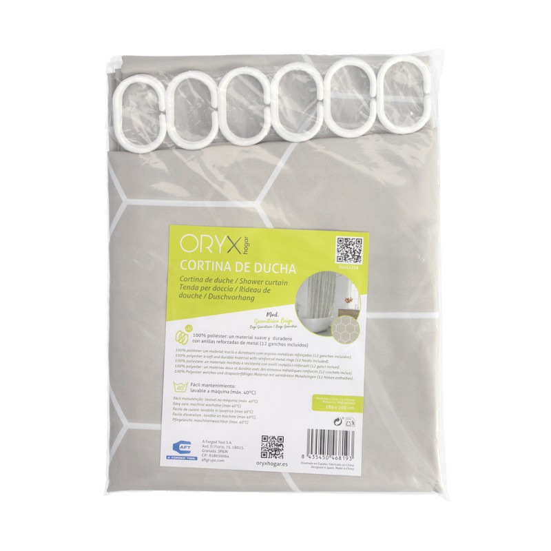 Cortina Ducha Formas Geometricas Beige 180x200 cm. Impermeable