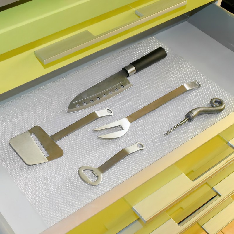 - Amortigüa los ruidos y protege cajones y baldas (lejas) de arañazos.