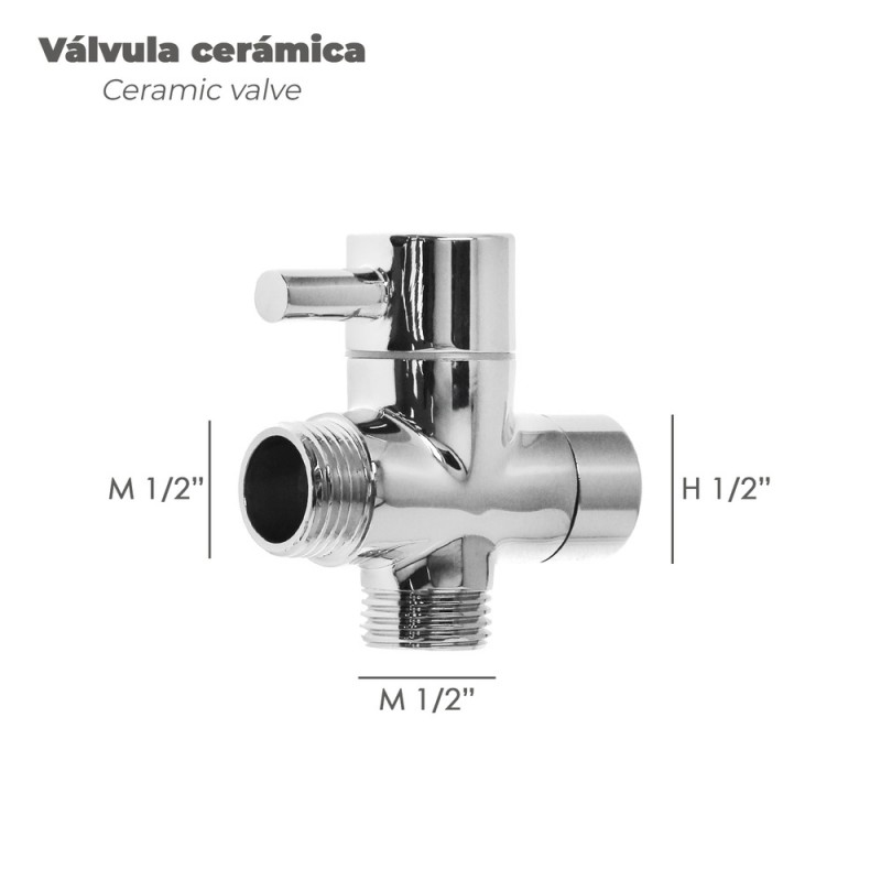 - Incluye conexiones de válvula: H 1/2", M 1/2" y M 1/2".