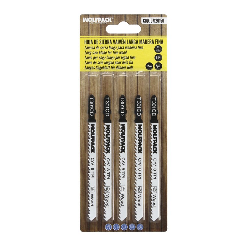 Hojas Larga Sierra Calar Para Madera Corte Medio 5 Piezas. Hoja Cromo Vanadio 58. Vastago T Universal
