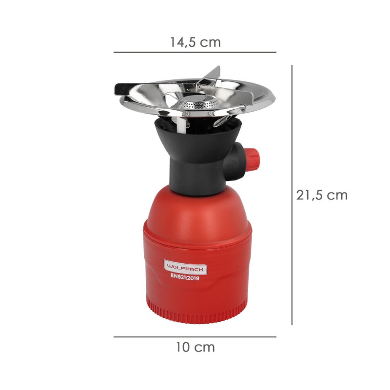 - Funciona con cartuchos de gas butano de 190gr que cumplan la norma EN 417 type 200.
