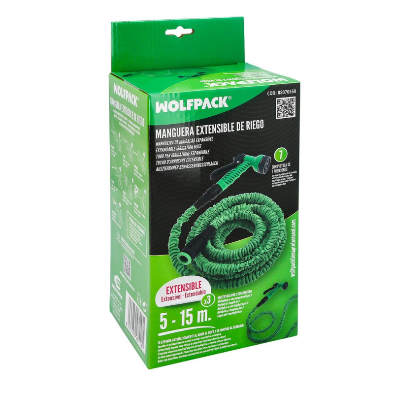 Manguera Extensible Riego 5 a 15 Metros Con Pistola De 7 Posiciones