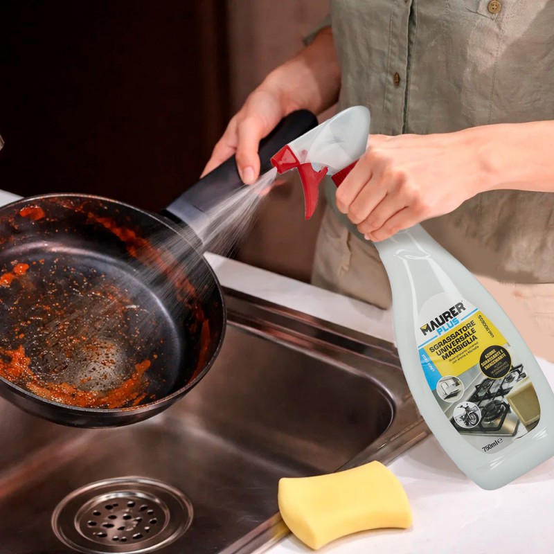 - Desengrasante universal que desengrasa y elimina todo tipo de suciedad: en cocinas, hornos, encimeras, suelos, piezas mecánicas, engranajes, materiales de acero y tejidos.