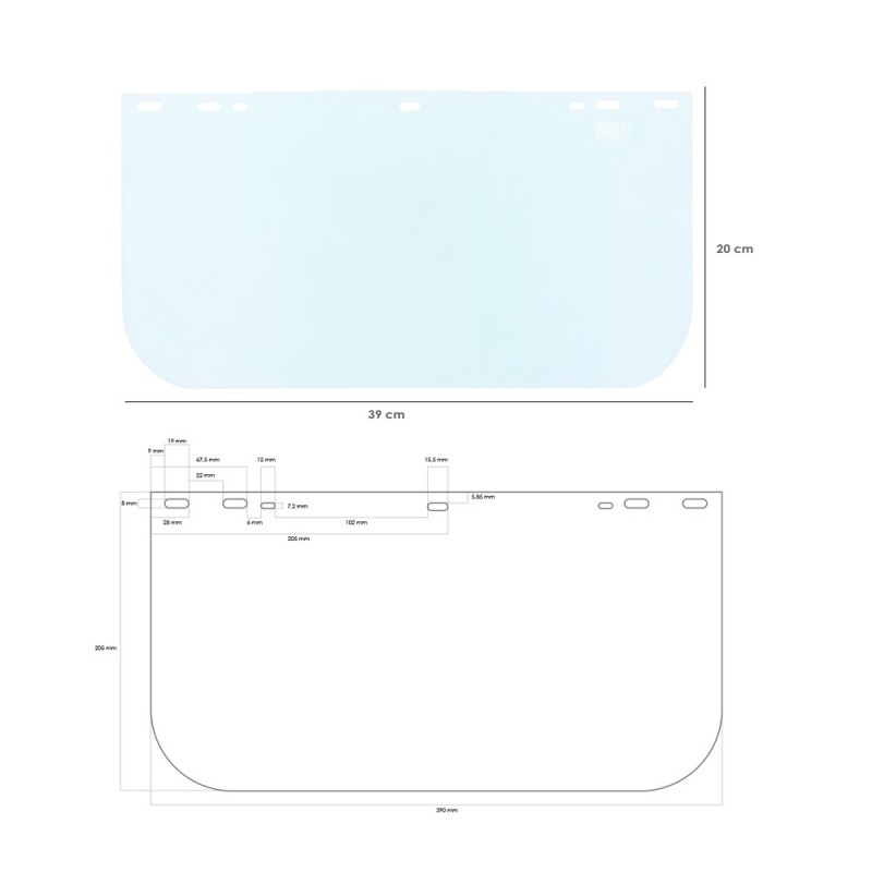 Protector Facial Con Arnes Pantalla Policarbonato 390 x 200 mm.
