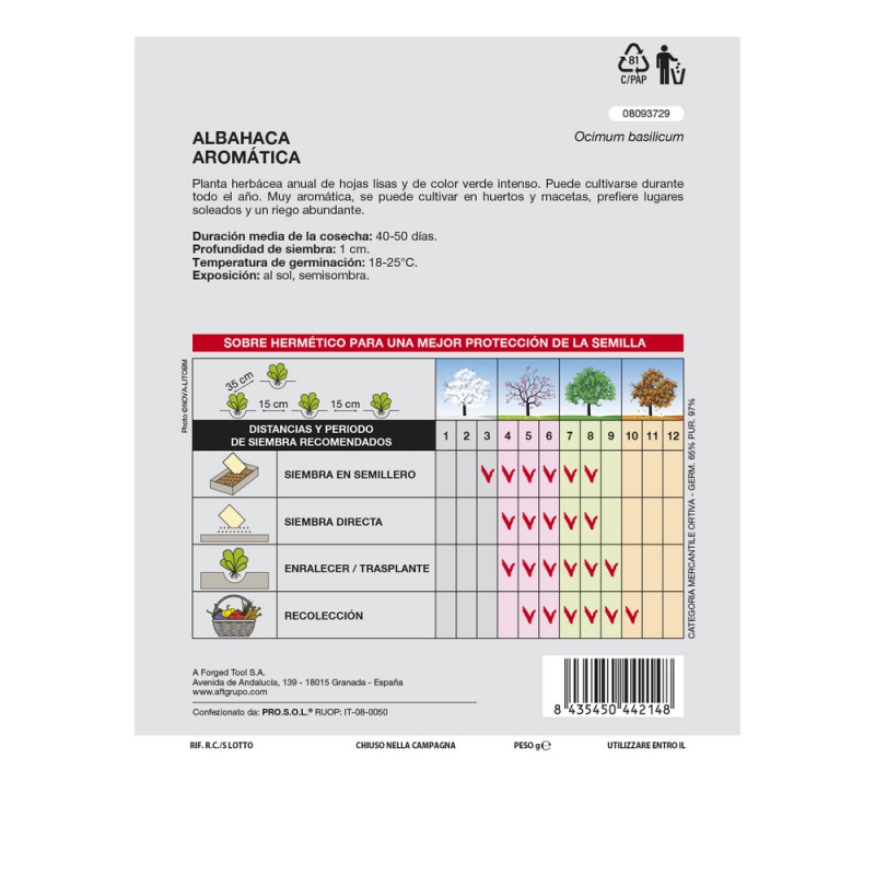 - Muy aromática, adecuada para la preparación del pesto genovés típico.