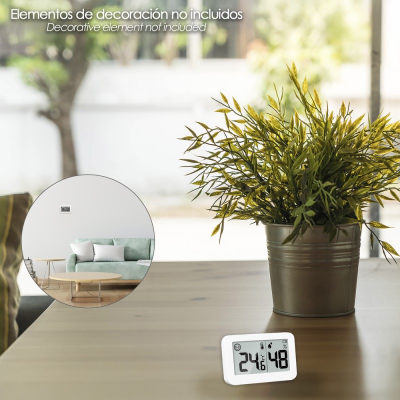 - Añade funcionalidad a tu hogar con este moderno termómetro digital, que también te proporciona información sobre la humedad del ambiente.