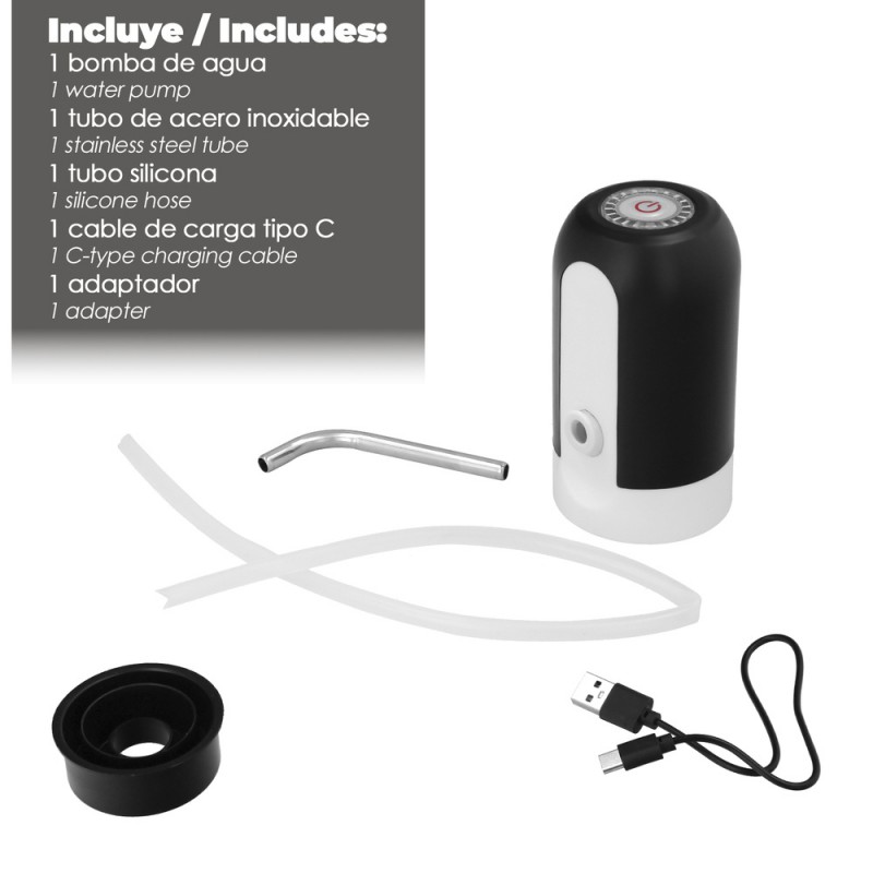 - Artículo también conocido como dispensador agua, dispensador agua automático, dispensador agua garrafa, dispensador agua botella, bomba automática agua, dispensador agua USB, dispensador agua oficina, dispensador agua eléctrico, bomba agua USB, etc.